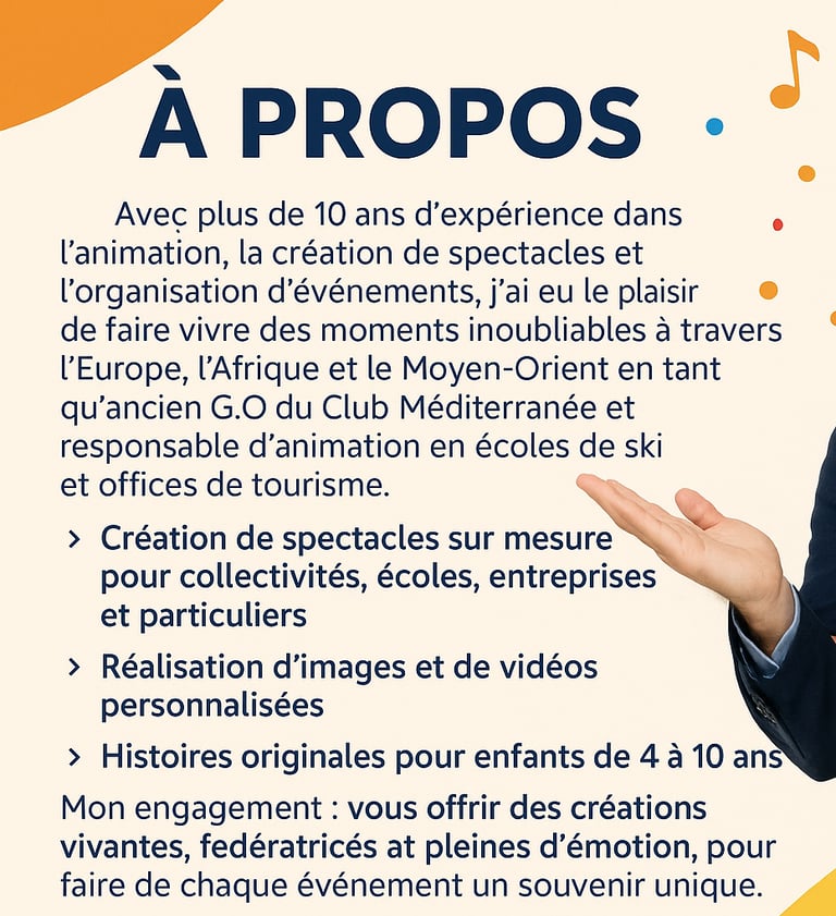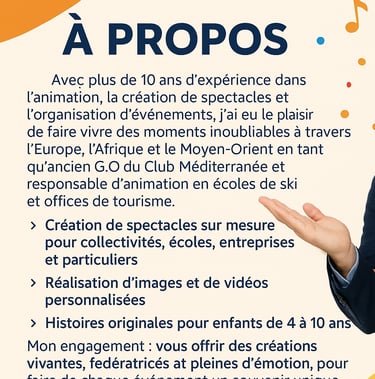 Je crée vos spectacles pour vos associations , écoles ,kermesse , arbre de Noël ,centre de vacances, etc..